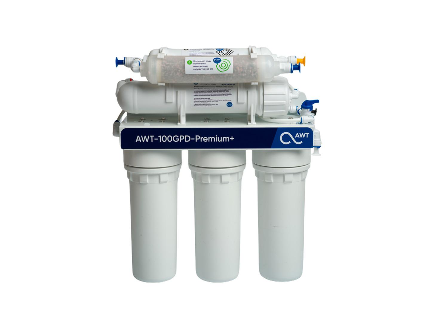 Фильтр обратного осмоса AWT Premium RO100-NP35M с минерализатором, 6 ступеней, 100 GPD (375 л/сут), защита от протечек
