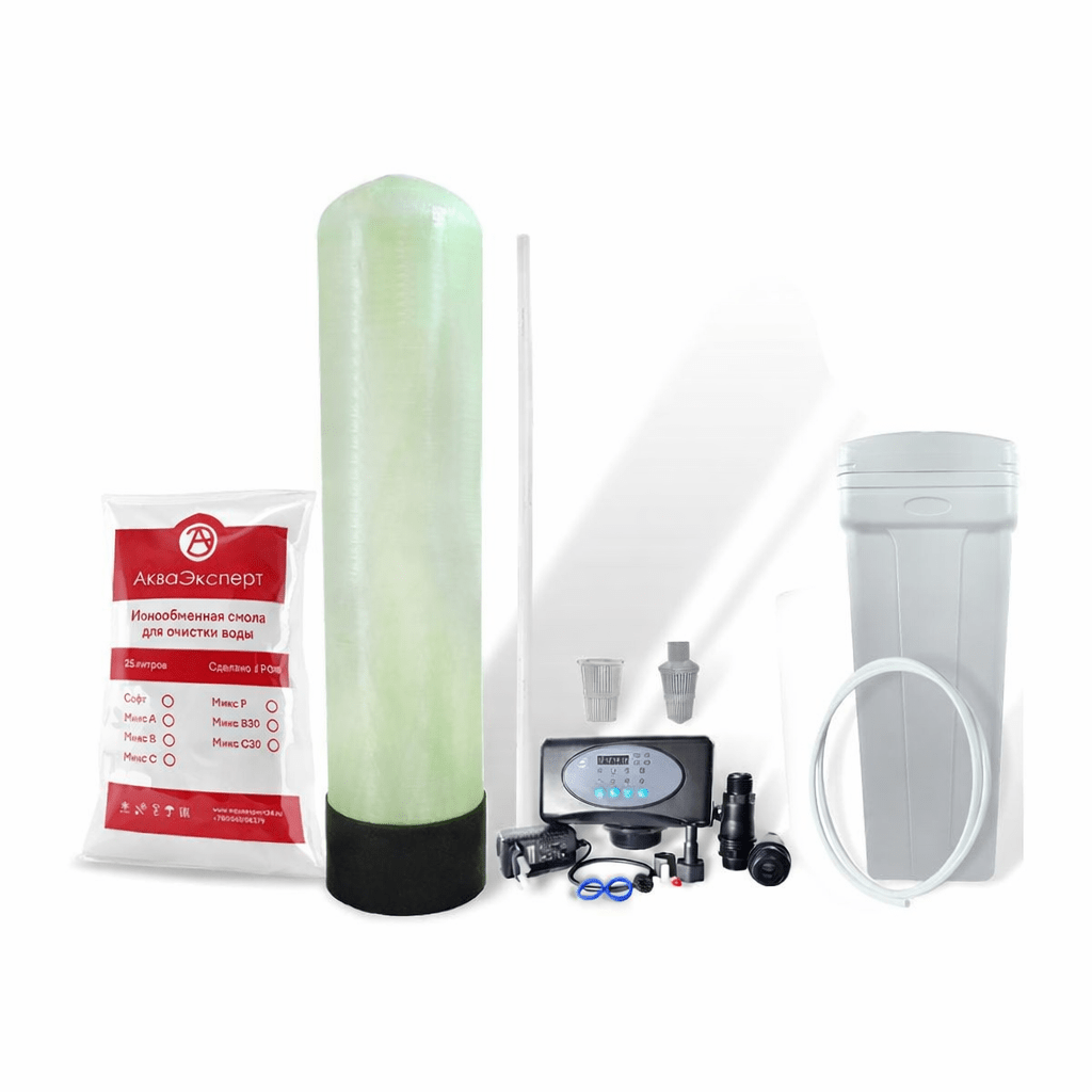 Очистку воды в фильтре Умягчителе для воды осуществляет Фильтрующий материал Акваэксперт. Промывается данный фильтра-материал автоматически, путём подачи в колонну раствора NaCl из солевого бака, где насыпанная таблетированная соль растворилась в воде. В процессе промывки Фильтрующий материал восстанавливает свои свойства умягчения воды, а использованный раствор уходит через дренажный выход управляющего клапана в канализационную систему. В период промывки не рекомендуется использовать выходящую воду из фильтра. По этой причине за частую время начала регенерации фильтра устанавливают в ночное время суток, когда вероятность пользования холодной водой минимальная.